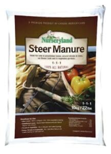 Nurseryland Steer Manure 10kg Ideal for new & established lawns, around shrubs & trees, on flower beds & vegetable gardens. This 100% natural composted manure …