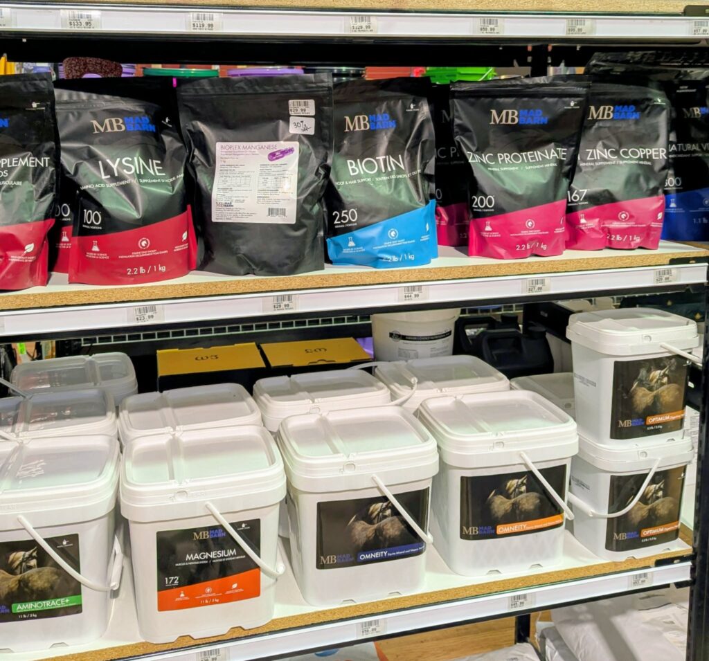 Stop in and talk to our farm and feed team about our selection of mad barn products and how they can benefit your horses health.